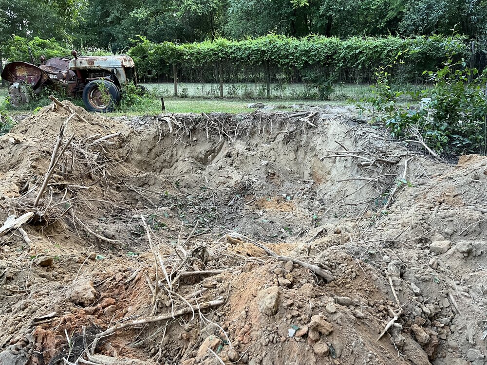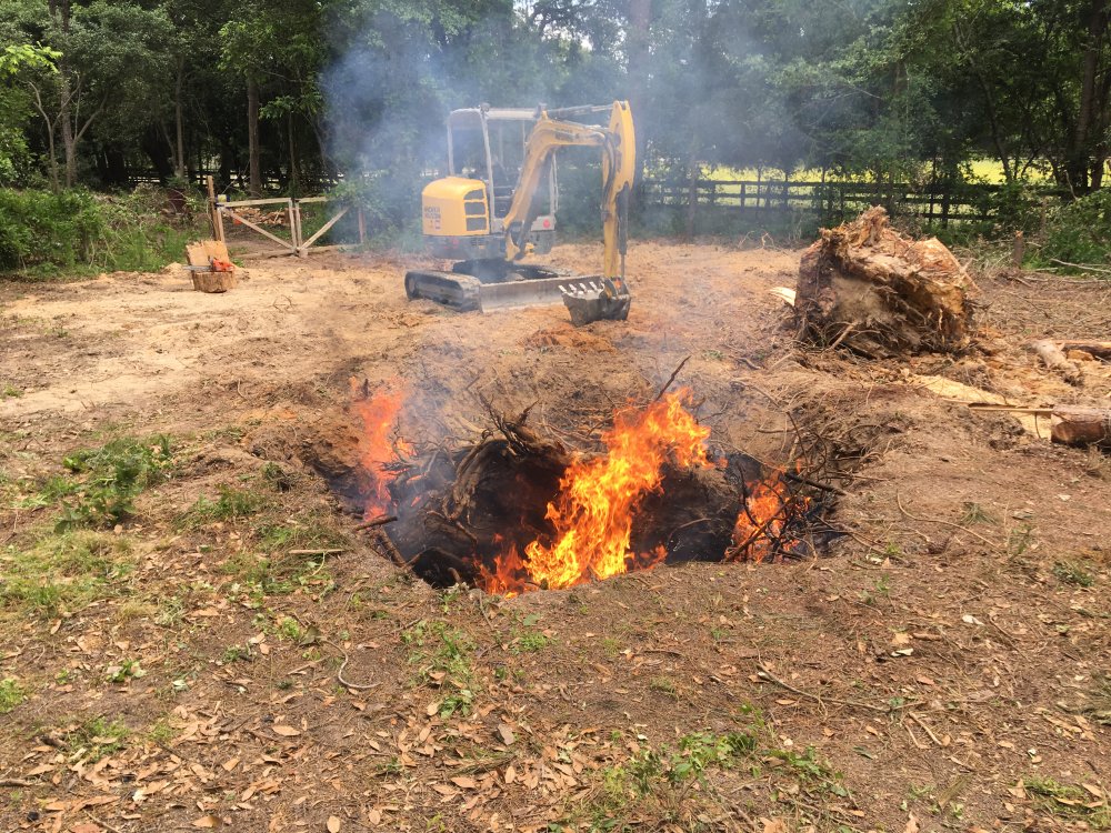 We were burning the tops and branches in the hole from the last stump. Those big ass stumps will sit there for a while to dry.