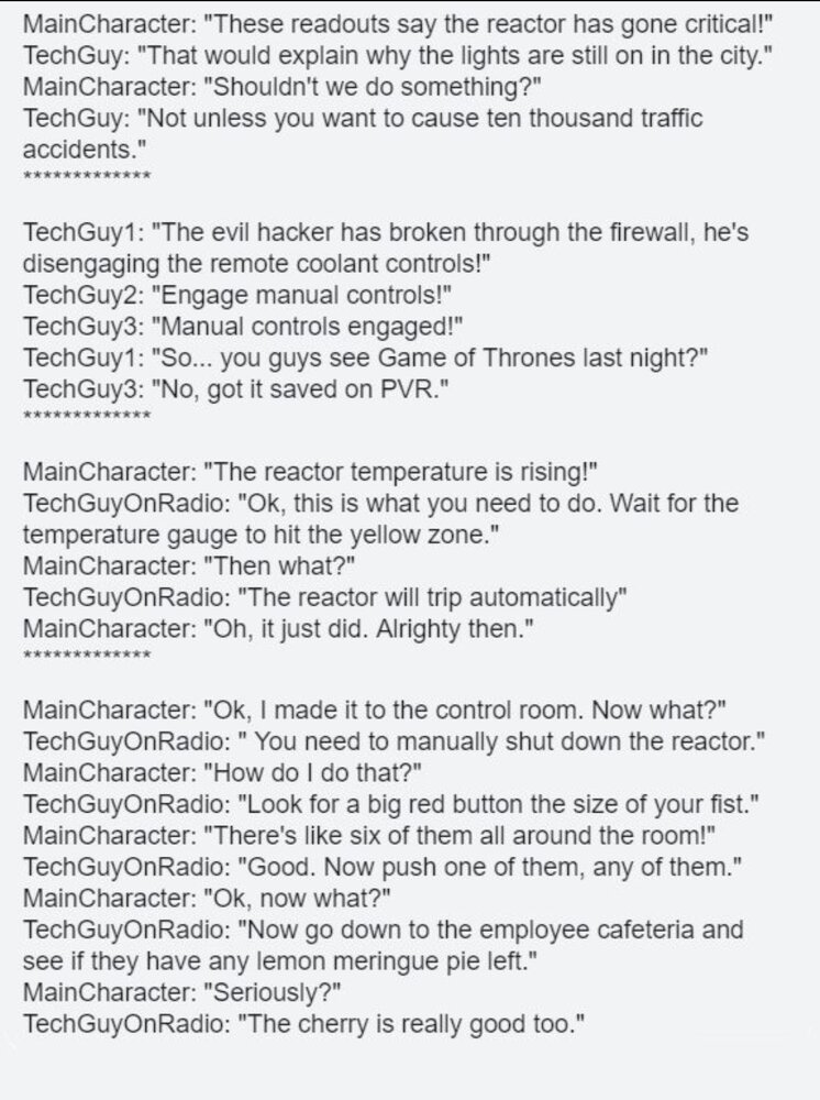 Can confirm the truth in all of this!!How movies involving reactors would go if the scriptwriters actually knew how reactors work;
