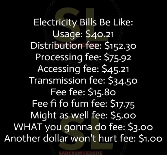 After Helene, our power bill doubled. It seems everyone I spoke with also enjoyed the same kind of experience. I threw the breaker on both the air handler and the outside unit and burned wood all winter. I smiled every day.Our local water utility adds a $3.00 'processing fee' if you pay your bill online with credit card. I would love to know what their processing fees are, their chargeback rate is and what those fees are....