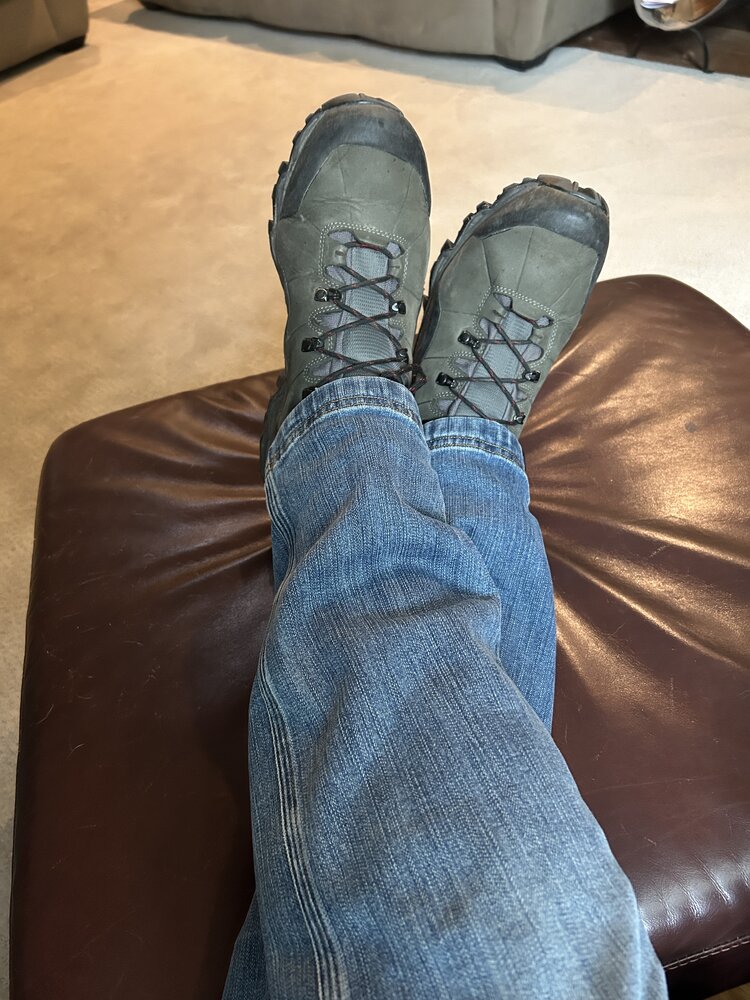 I wear crocs inside, but I never wear my boots past the living room (where my crocs are). That said, feet on furniture in general drives me nuts.