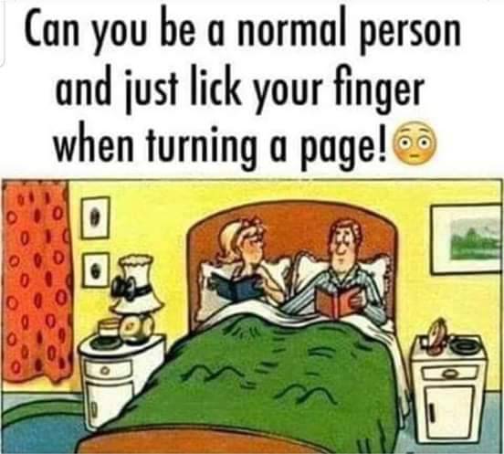 For the record - that whole licking fingers to turn pages thing is a disgusting habit.