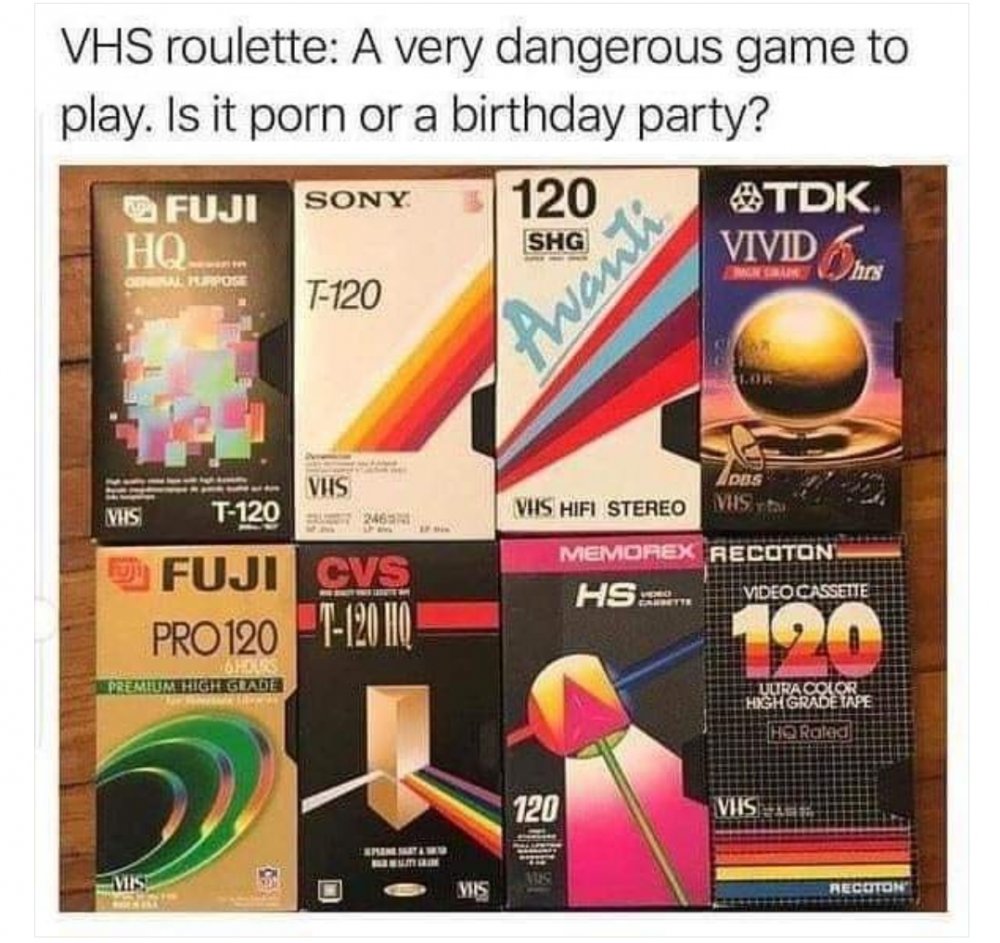 Porn taped over with birthday. Tweak the tracking right and you can see static tits.