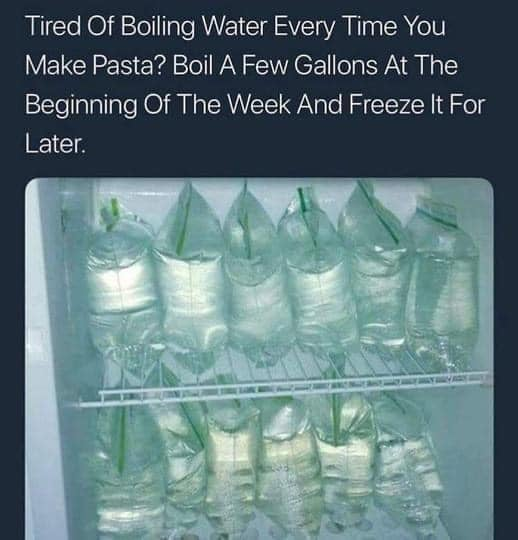 that actually looks like my freezer a few days before I go camping without ice restocking capability. A big ole bag of frozen water lasts SO much longer than a bag of ice cubes