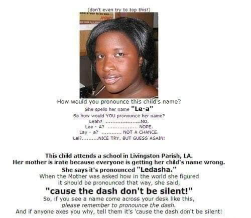 Oh and a teacher friend had a child who’s name was phonetically Ab-sa-def, spelled….you may have guessed it… Abcdef.