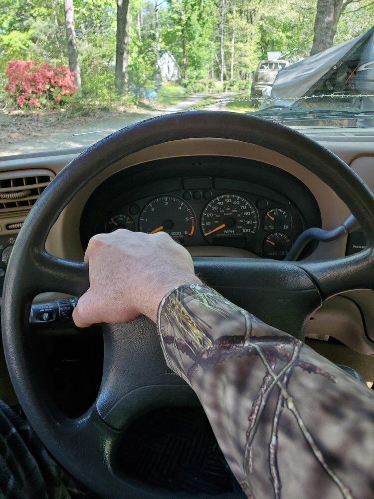 Bad arthritis in my right hand and fingers, grabbing the wheel hurts. Grabbing it like this is comfortably, same grab when driving the K1500.