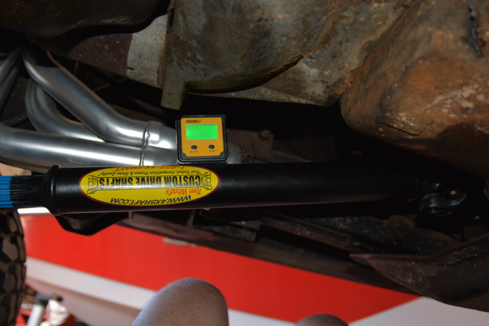 The angel of the shaft was measured and so was the angle that the transfer case.