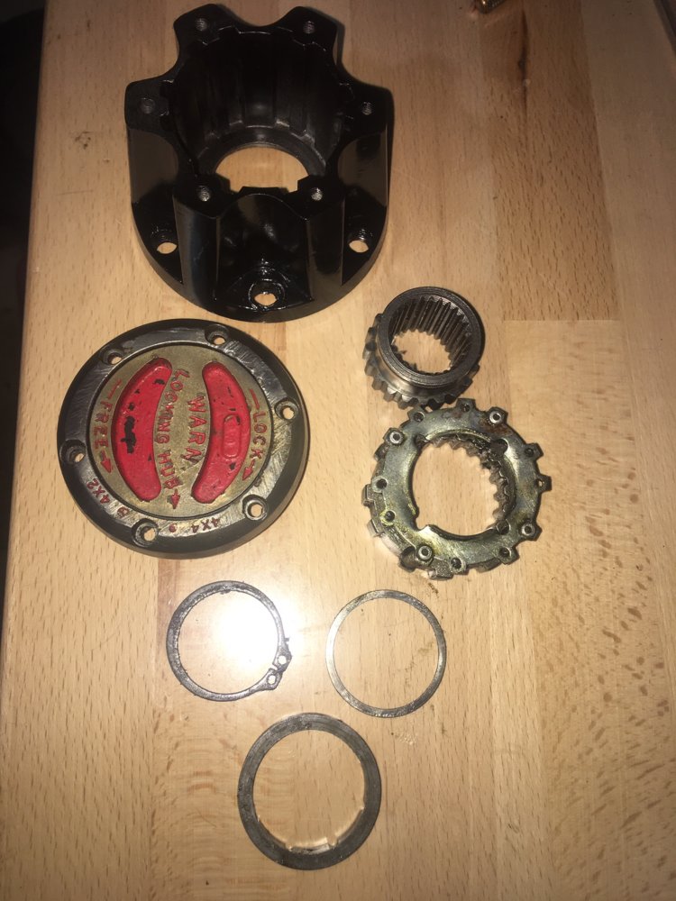 When the front axles were installed, the snap ring behind the Warn manual lock was not installed.