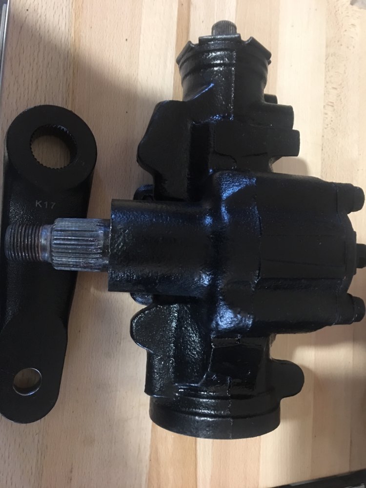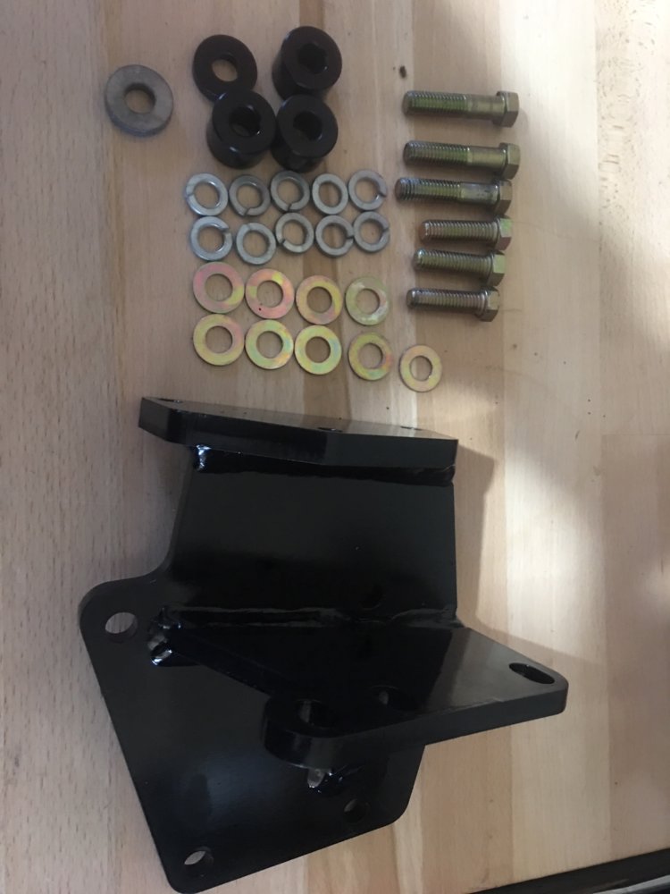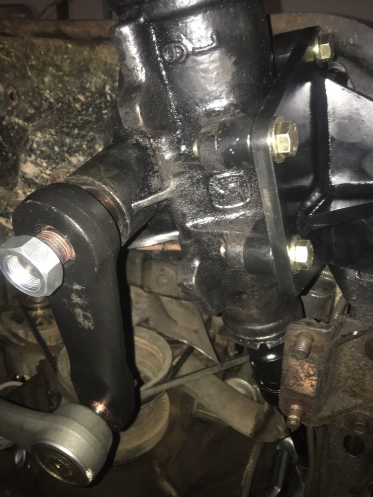 To get more separation between the pitman arm and the new tie rod arm, they make a bracket that moves the steering box forward about 1.25"