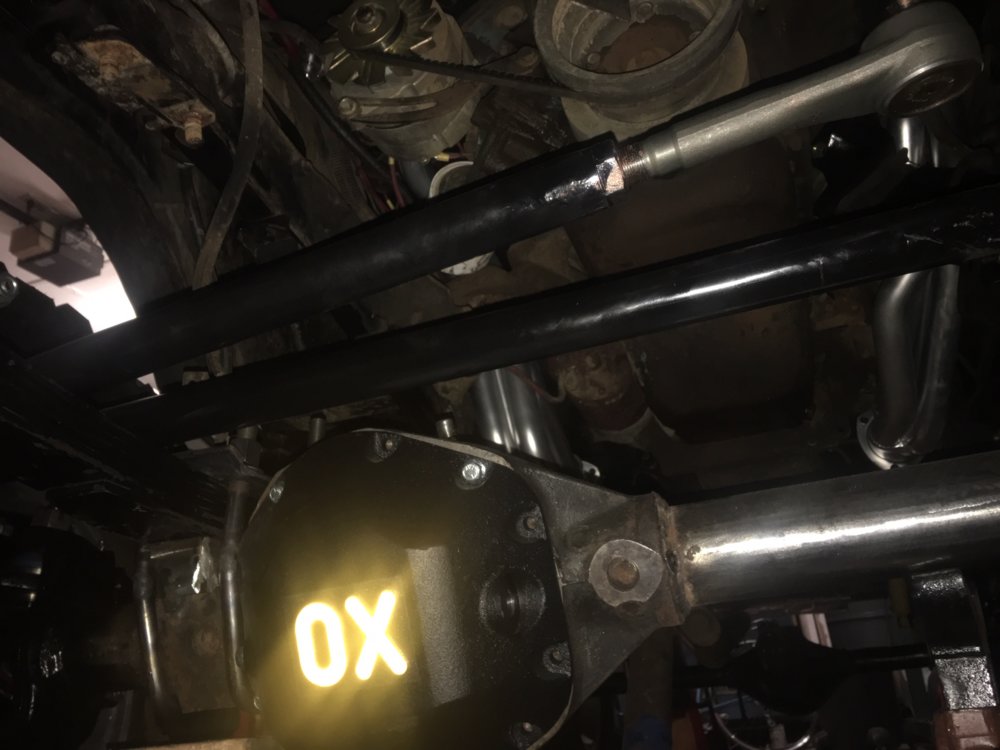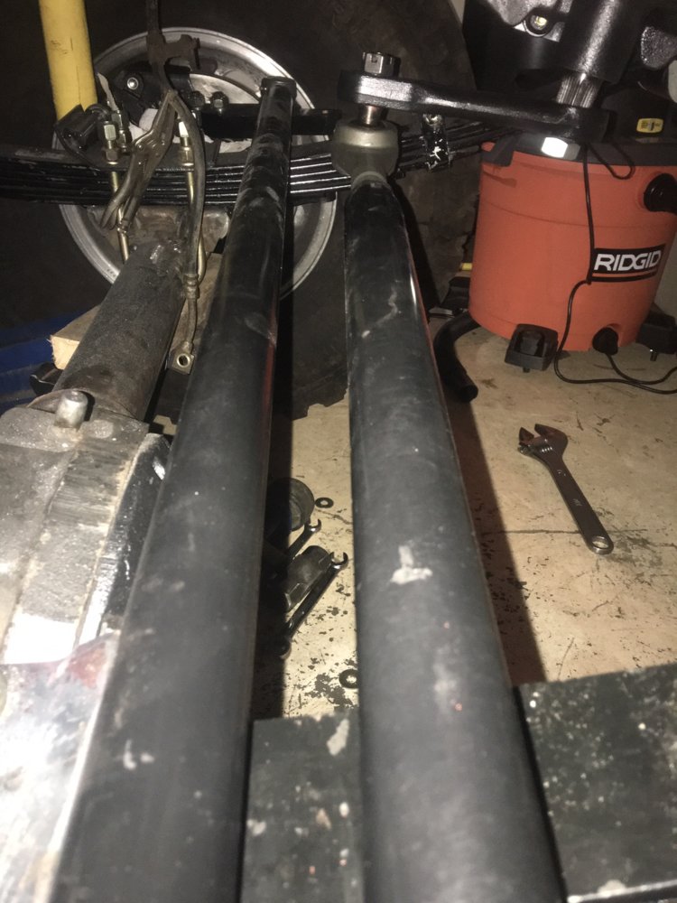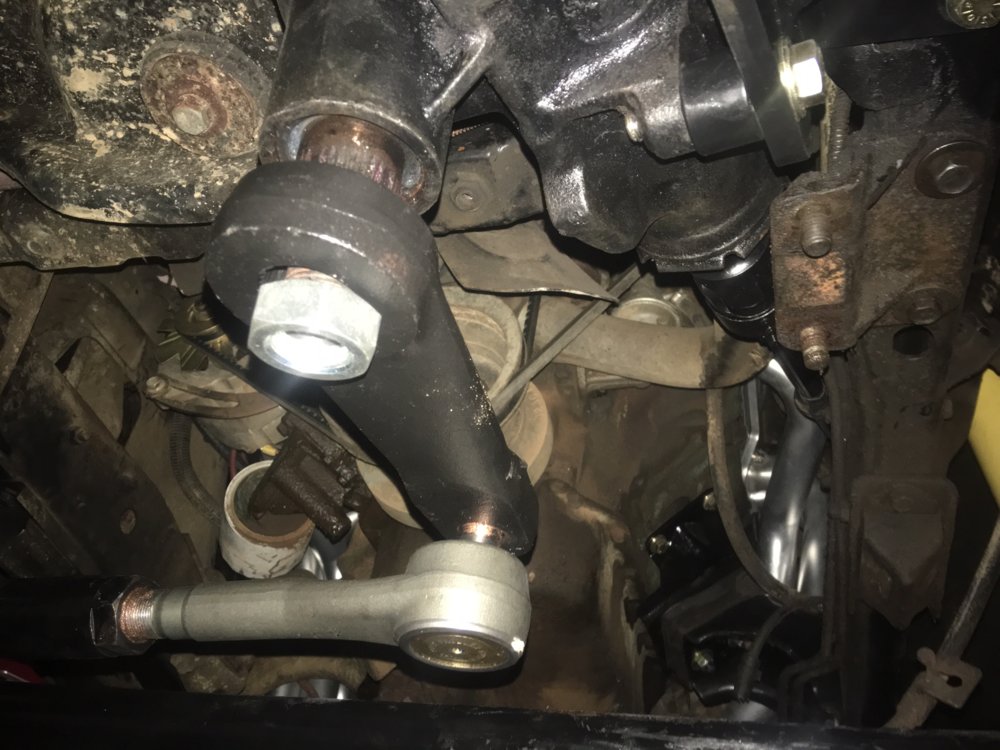 The Chevy one ton drag link ends were used (MOOG ES2026R and ES2027L).