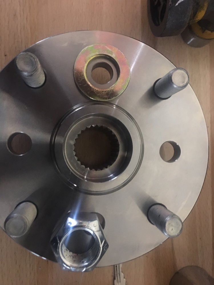 One of the interesting things about the old flange was that the washer was integrated into the design since the spline part of the shaft is about 1.25" in diameter and the threads are 3/4"