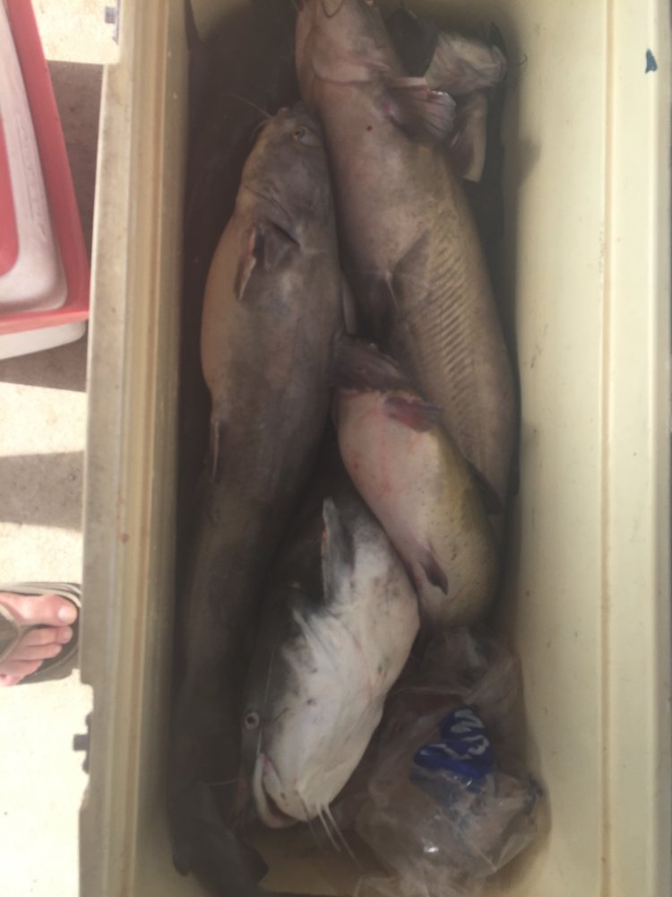 Went to Santee last weekend. Had a great day I Friday. The sand storm haze was really weirdWife had a 40 plus lb cat on and got it to the boat. Was way bigger than my net, I tried to land it, but rolled out And broke line. She looked at me and sad “ get a bigger net” lol. Saturday was to windy until 6 pm so we went out For some night fishing. Fish started Biting around 8pm and look to be a killer night. That was until around 10:15pm when the wind went from 5mph to 50+ mph with no warning in about two minutes. No lighting, no rain, nothing, just wind. IT got serious in a hurry. Wife was near panic, had to cut two drift socks off, 6 rods out when it hit and All tangled and ended up in the prop. made it a cove After taking a 20 minute beating figuring it was just a mater of time before the pontoon was capsized due to the 6’ plus wave height. Waited another 30 minutes in the cove and headed back The 6 miles to dock with still 3’ plus waves. Boat deck was covered with 4” of water about every 4th wave Taking water over the front all the back. Was 1am by the time we got back. Was the worst and scariest time on a boat, and been in some rough waters off shore in my old boat. Wife said she is not going night fishing anymore.