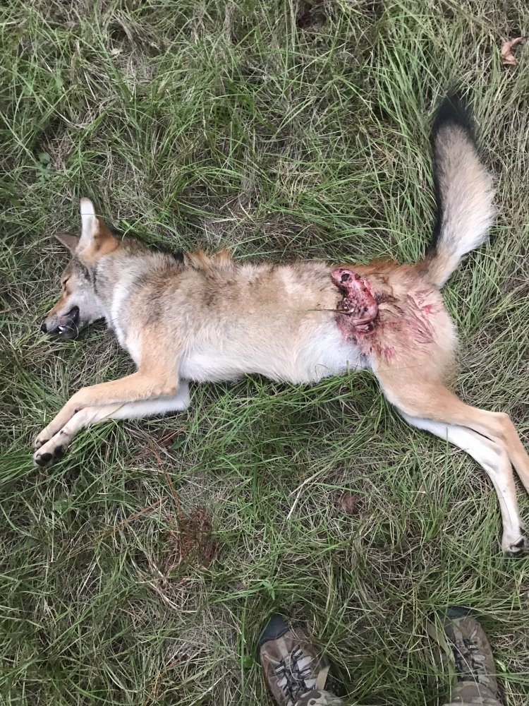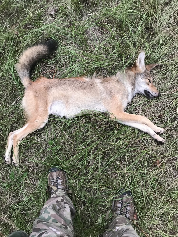 Bastard came out right when I normally have deer on my feed. He ruined my hunt so I had to let the AR eat. I’ve killed many things with an AR and 77 grain. It’s usually clean through and through. This particular time it blew this dude’s guts out. Entry wound is in his chest. He was trotting at me. I put him on the scales. He was around 30 to 35. It’s old crusty scales that aren’t accurate. Wasn’t huge, but enough to disrupt the deer in the area. Roadrunner can rest easy for a bit.