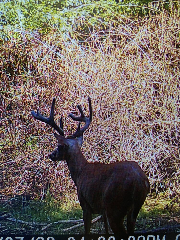 your probably right. im assuming this is the same bachelor group that was here early spring then disappeared until now. the taller 8 looks alot like a big tall 6 from last year. that no one saw, neither did the neighbors but had night time pictures off all season. i figure i have till the acorns start falling and his pattern changes so fist week or two of season or he will be gone.