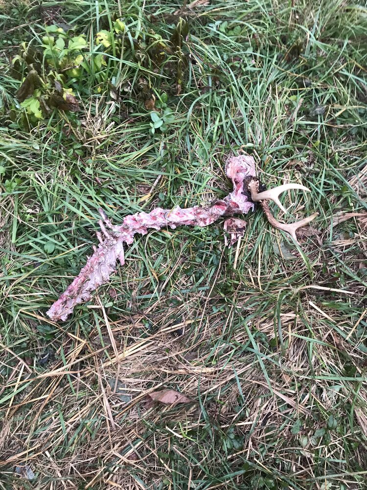 That I'd be hard pressed to think that a single coyote ran down and killed a grown deer. I'd bet my bottom dollar this is a deer from the trespassers thread that happened to die on your land.