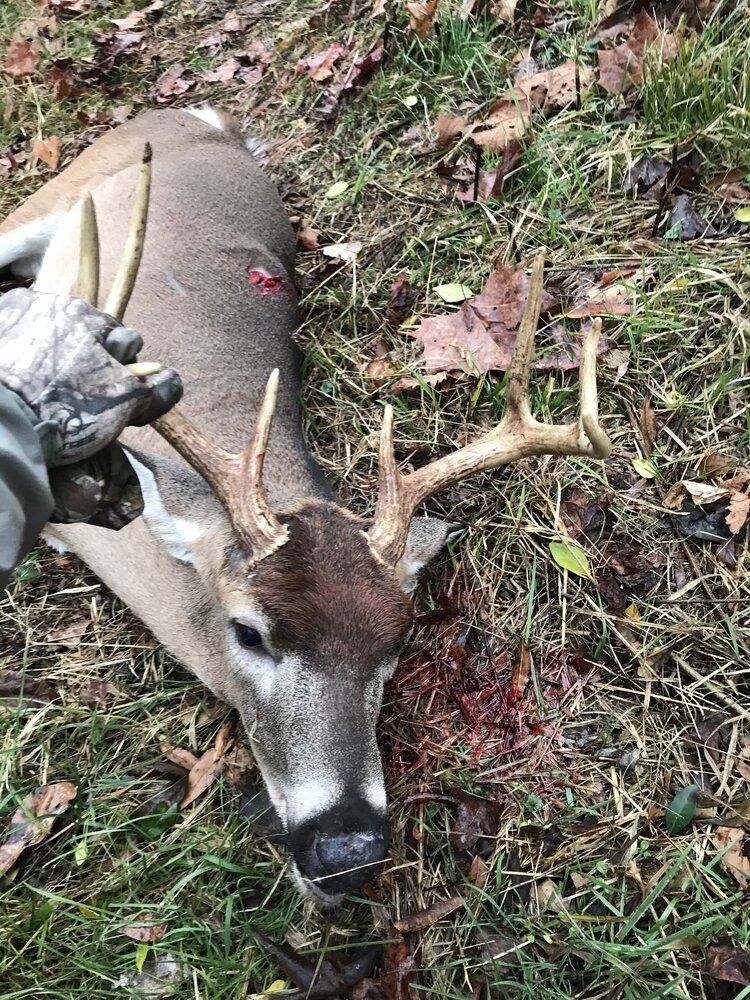 Your right. He was on the move left to right. I had to get him quick. I’ve been trying to aim a little higher this year. I shoulder punched 3 last year and they all ran a little before dropping. I adjusted a little high on the shoulder this year and they’ve been dropping where I hit em.That's awesome man! Looks like you got extra lucky on the 8'! 1/2" higher any you wouldn't have had him!
