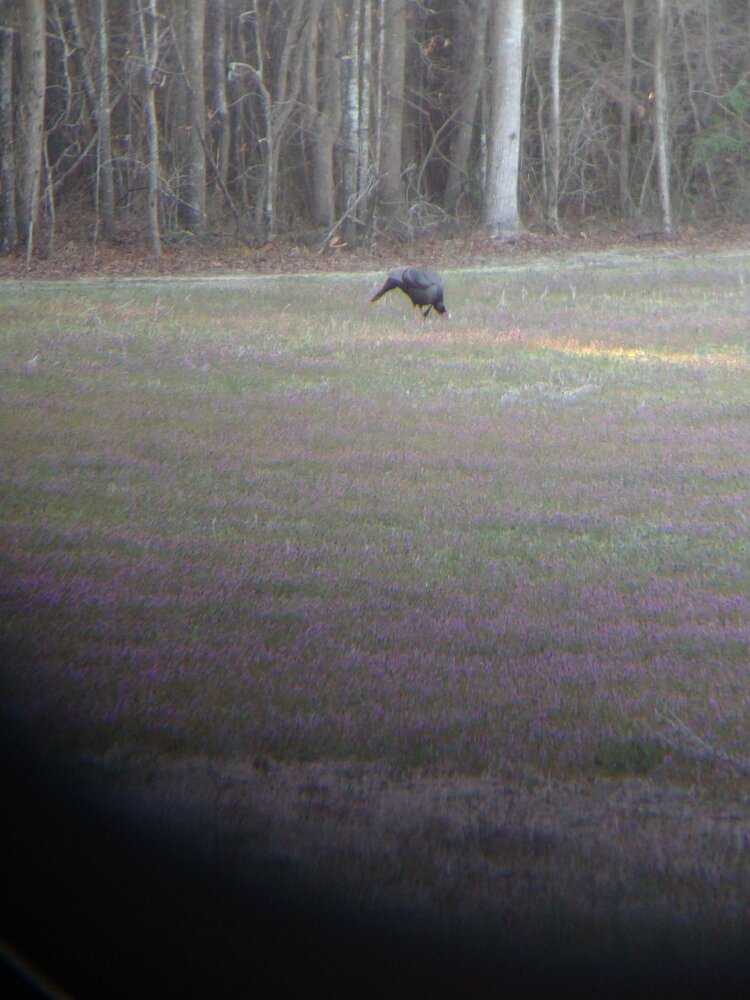 This is the only bird I've seen lately. The flock of hens hasn't come out of the woods yet. Last year this time I had 18 in the back field, him and 17 hens. I'm going to leave him alone for another year and hope he procreates. He'd be dang easy to kill though ha