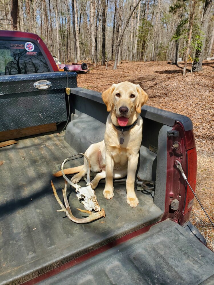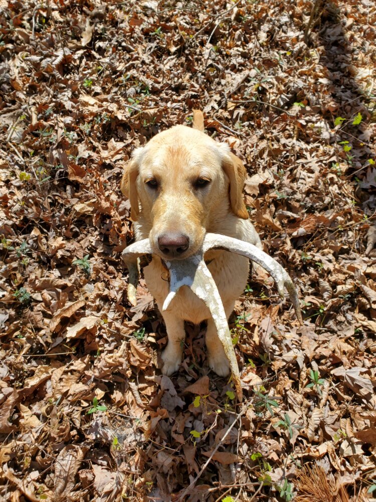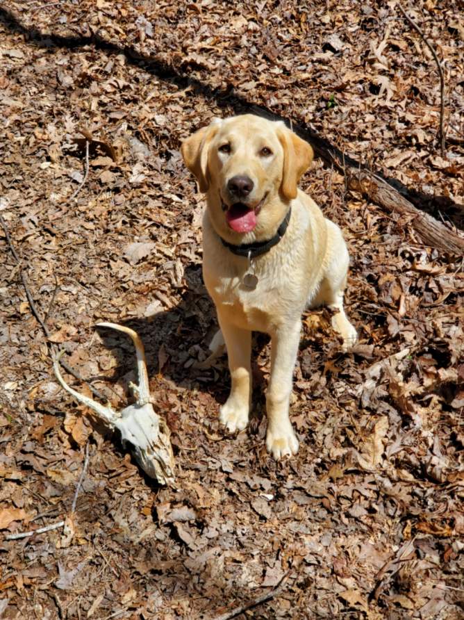 Walked around the woods looking for turkey & deer sign over the weekend and took the pup. Had to help her find both, but she's learning!