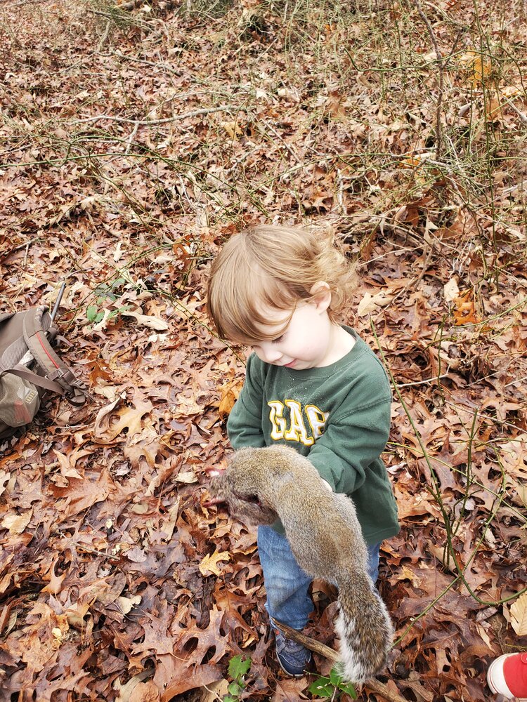 Took the boys out for some chicken of the trees. Took my grandpa's Ruger single six and JC Higgins shotgun. Hadn't squirrel hunted with a pistol, but it was pretty fun. Got the first one at roughly 30 yards with the single six with 6 1/2" barrel and irons.