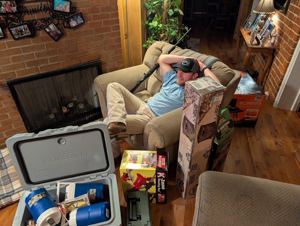 He did donate 300 dollars in tickets. His companions wives spread them out and places them in the boxes. Heck even the cooler is full of stuff.Name checks out. Looks like the hunters helped your kid.![]()