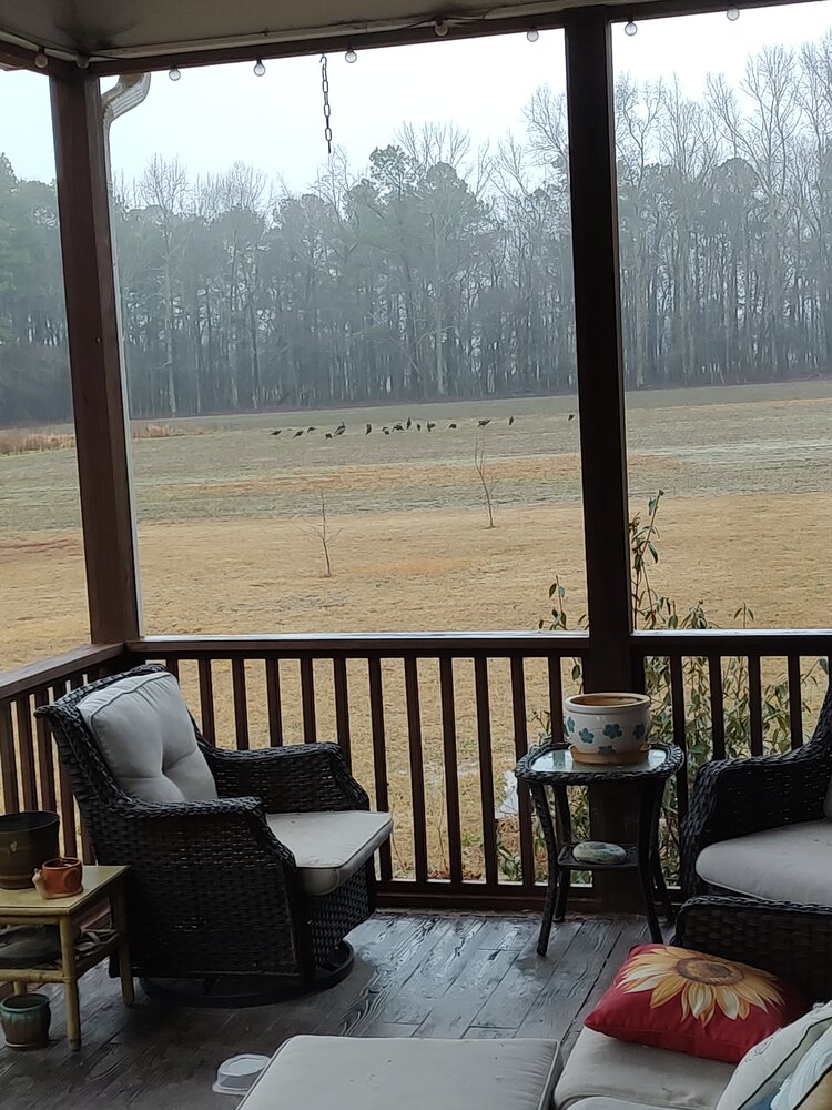 Hadn't really thought about them until this morning. I counted 18 before they got mixed up. They roosted on the edge of my field last night and were flying down as I left for work this morning. Just stopped in the middle of the road and watched them for a few minutes.Who's gearing up for thunder chickens? Went with a couple folks last year, would love to link up and go with some new people too.