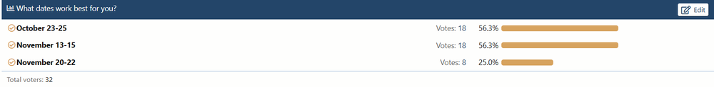 Sorry for your loss. If that happens we will cook you dinnerIt's looking like there's a solid possibility I could be spending my birthday (10/24) with this group of jack-wagons for the second year in a row.