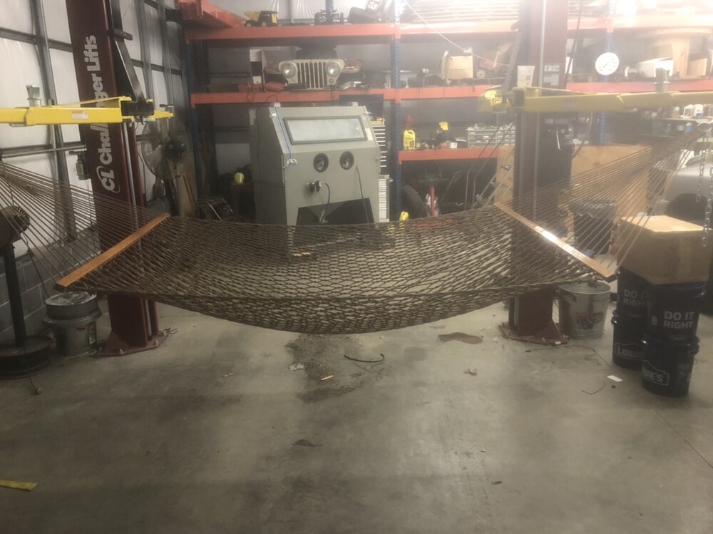 Don't fall asleep on that or you might wake up at the topNewest use for the two post lift.