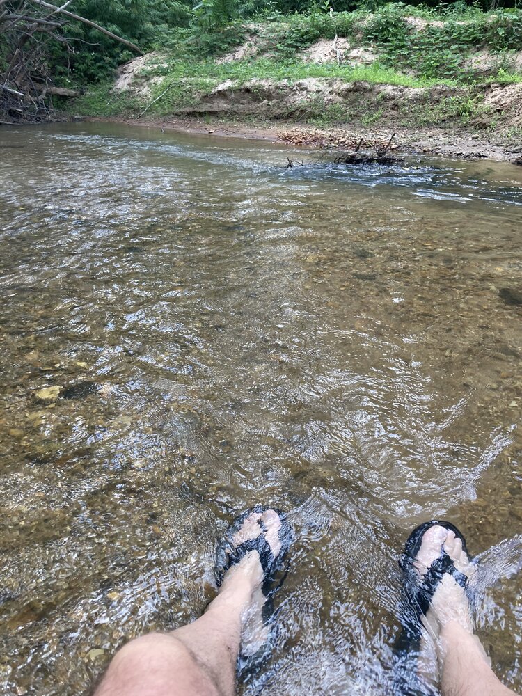 Look down look down look down LOOK DOWN!!!Waxed back of camper today, then took dog to creek for some water time. Just got back