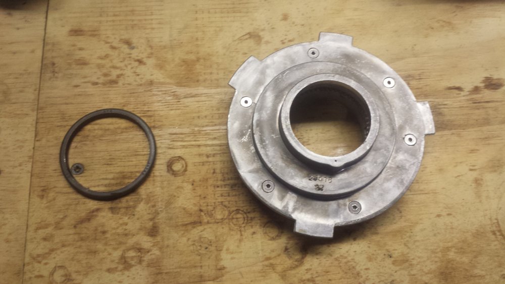 You need the clocking ring because the bolt pattern is off from Ford to GM and also because of the massive size of the 273 case. It will try to occupy the same space as the ABS module, but we'll get to that later in this documentary.