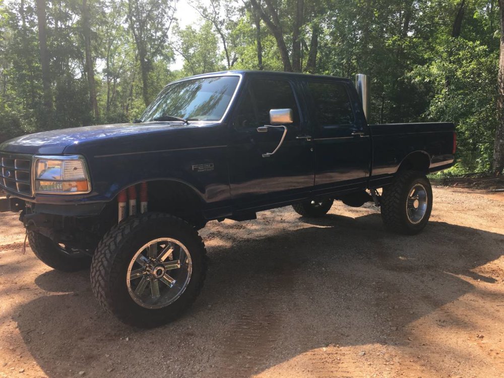 Heres my 96 F250 xl 4x4, auto, diy intake, fpr shim, 6pos ts chip, mbrp downpipe to 3.5" straight to 5" diy tip, 285/75/16E BFG KM2's on ultra wheels, frieghtliner led cab lights, hornblasters dixie horn setup, dual tone marine airhorn setup, 3000k hid headlights, 7" hid offroad lights, rancho shocks, auxillary reverse lights, lockright for the rear (yet to be installed), some minor body damage and the list goes on....close to 300,000miles and still runnin strong!