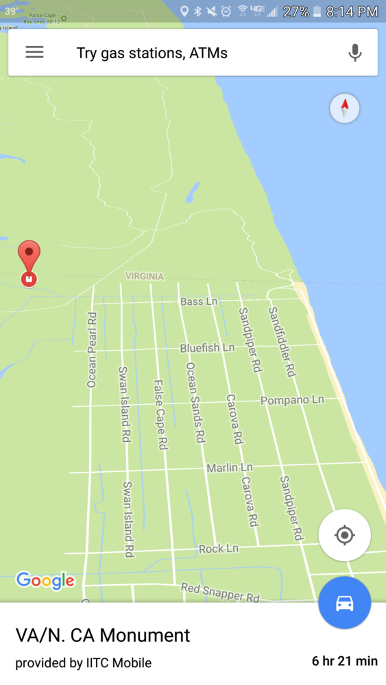 Want to go all the way up TO the state line, but stay out of anything that could turn into a recovery event driving the dually (would prefer to drive AWD car)... 2 days before Christmas! Appears I can do that and stay off the beach/outta the sand, but GoggleMaps has wronged me before!