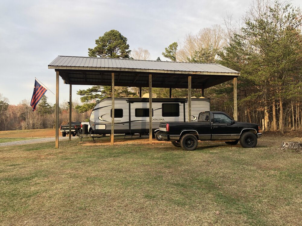Ive got a 18x36 14’ tall carport for my camper. I initially built it for a 5th wheel which is the reason for the height. It got totaled shortly after and we opted for a bumper pull. I’m trying to come up with a solution to keep the sun off the front and drivers side of the camper. It isn’t horrible (yet) but it’s aging faster than the sun protected sides. I want to stay with a gravel floor and I feel like I’ll have moisture issues if it’s completely enclosed without a vapor barrier and concrete floor. Am I crazy for thinking about adding a front wall and door of some sort, and 1 side wall and leaving the rest open? Outside of aesthetics (more on that below) I’m trying to see what other issues I may run into. One thing that comes to mind is wind concerns. I’ve googled it and it reminded me of when I checked a cough on webmd… Basically, it should have fell already, but the only wind related suggestions were to not leave both gables open.