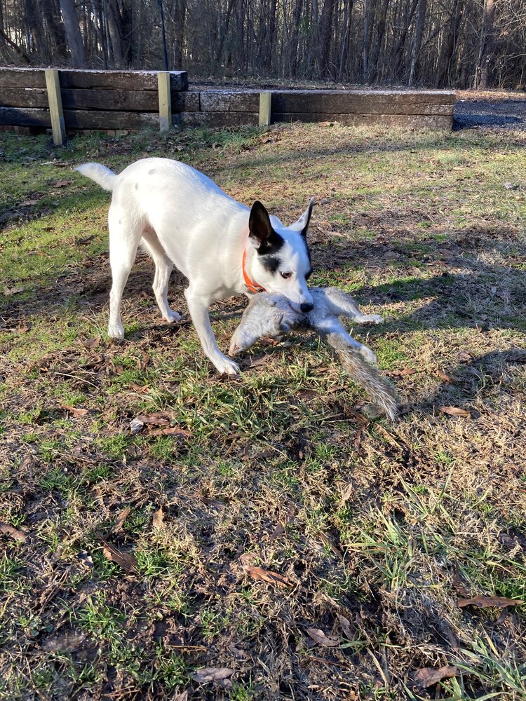 daisy is about dumb as they come. never have i seen a dog do a back flip trying to catch a leaf.... that was still attached the the limb. or that time she thought the water in the pond she just drank out of would be just like the ground and there she went nose down ass up thought i was going to have to go in after her.You leave my potato alone