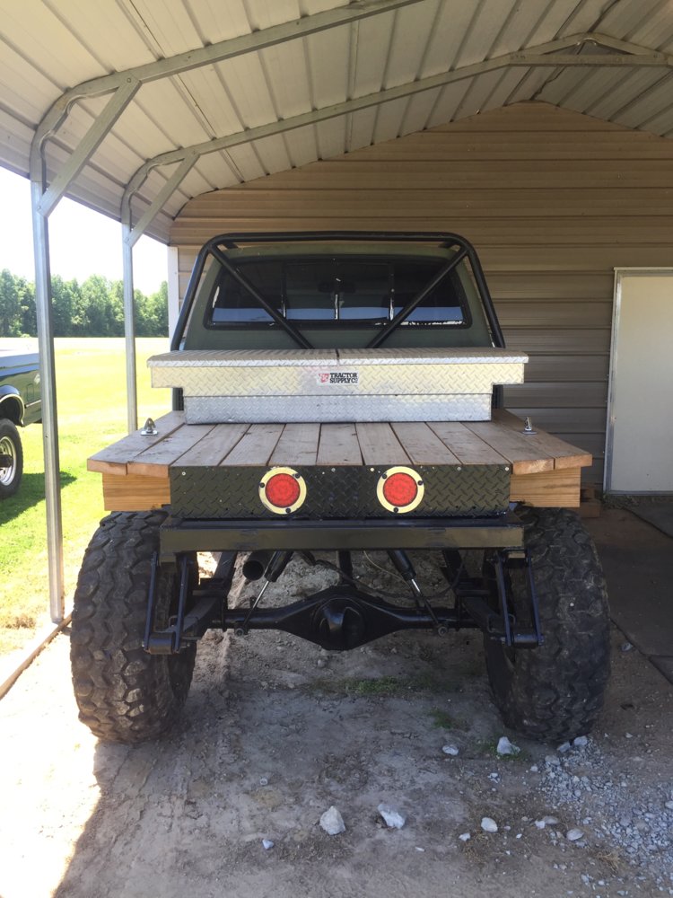 Someone spent a ton of time relocating the wheelwells on the bed to accom9dare the 114" wheel base. Nothing about the bed was functional or built to withstand a brush with a tree, so I pulled it off and plan to scrap it. It was a bit of a rusty bondo mess.