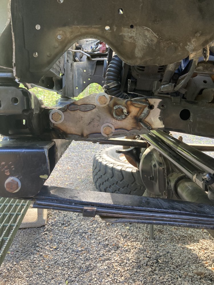 Got busy on it these past two days. Pulled the diff covers, resealed with rtv and new gear oil. Went ahead and finish welded the frame tubes for the front shackles, and front spring hanger to the frame. Measured for tie rod length and tack welded the bungs in. Going to need to knock the excess off the u bolts once I decide on the spring pack.