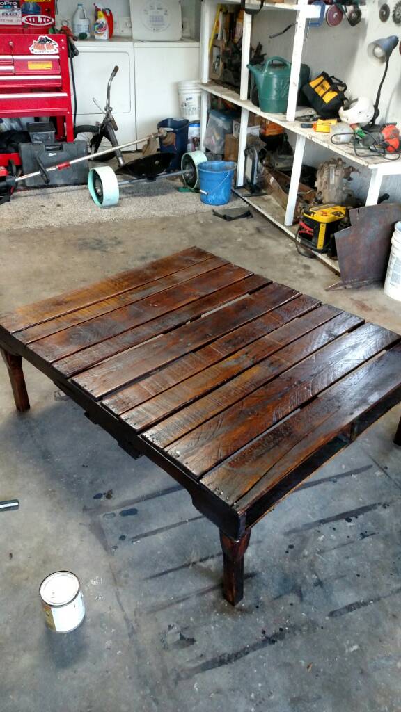 Girlfriend been on my ass for over a month to make her a pallet coffee table. Took a pallet I used to hold firewood all winter and this is what she ended up with