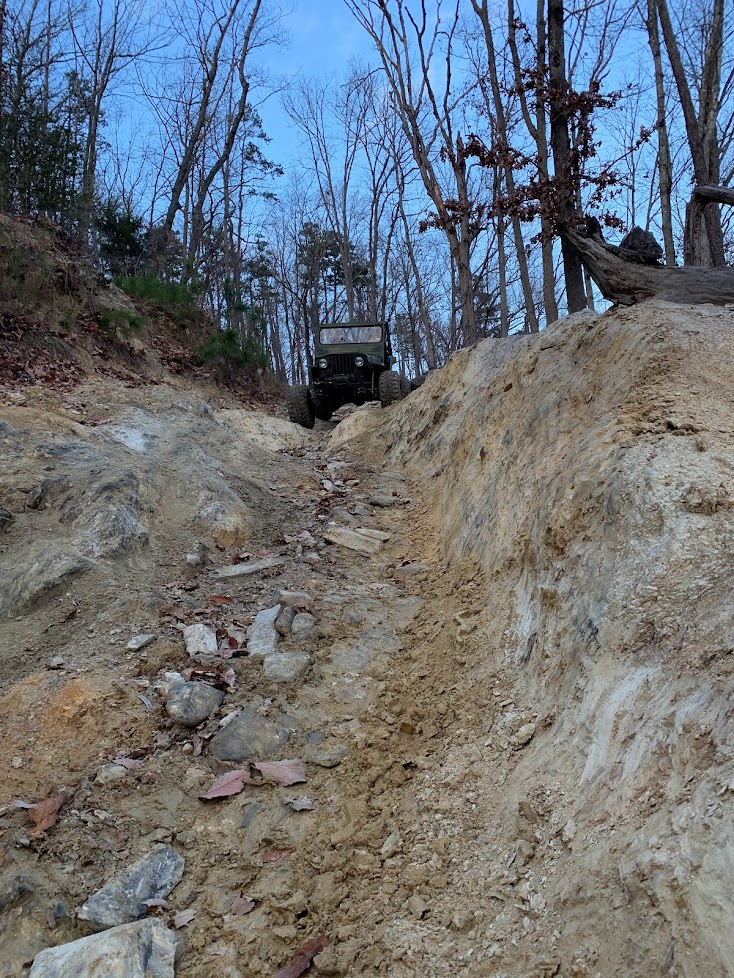 Set up camp at the end of 516 and got the Willys unloaded and got out on the trails. Plan was to ride Falls Dam, Dickey Bell, part of Rocky Mtn Loop and Daniel, then turn around and ride it back to camp.
