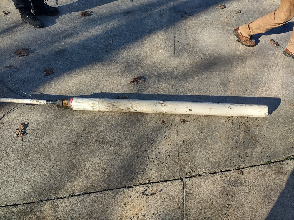 We used a skid steer with the forks on it, tied a prusic knot around the pipe and the other around the forks. Picked it up as high as the skid steer would go, clamped the pipe with that vice grip tool thing to hold it in place while we slid the rope back down as the forks lowered down, then repeat. It worked pretty good until we got to a coupling where the pipe was connected. At first I was going to cut it at every coupling, but I decided not to just in case the pipe slipped and we would have something to grab onto hopefully before it fell back into the well. We tried to raise the forks all the way up at one point where it had a pretty good arch and tied my mini skid to the pipe and pull it out. That didn't work, it kept breaking at the couplings, which would scare the shit out of me thinking it was going to fall back into the well. It was 1" schedule 80 with threaded ends on it.
