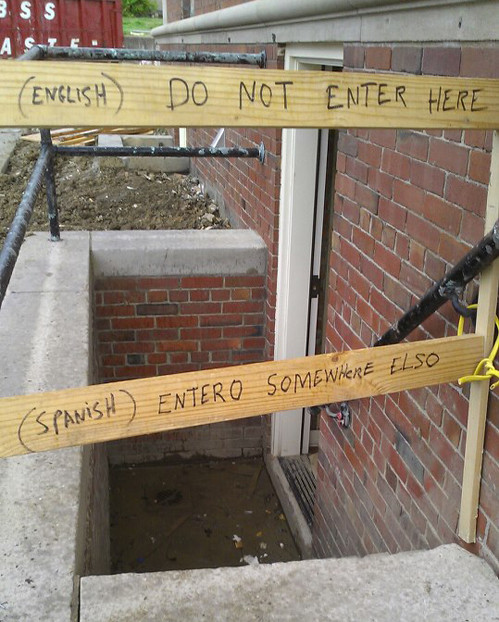 That reminds me of something a super said to the cast in place wall crew on a huge wharehouse job years ago. A huge storm was approaching fast but they could not see it over the 40' tall building. He was on a walkie talky trying to tell the crew to cover the poured concrete w a english/spanish comm. breakdown and not getting his message accross, he finally yelled "MUCHO AQUA!!" into the mic and the guy on the other end yelled back SI, SI!! MUCHO AQUA!!!
