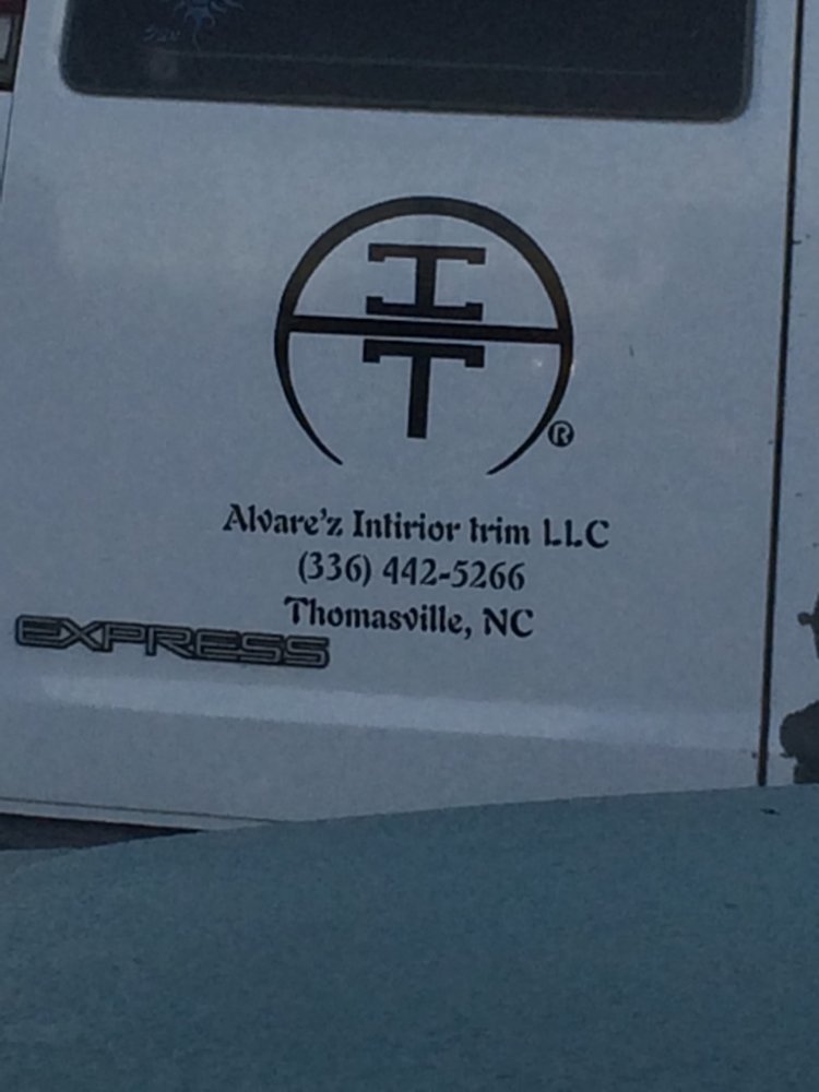 The funny thing is that odds are good that since he does interior trim and not sign painting for a living, he had that done by someone else. So, not only did he not notice that it was wrong, the sign maker didn't notice either.