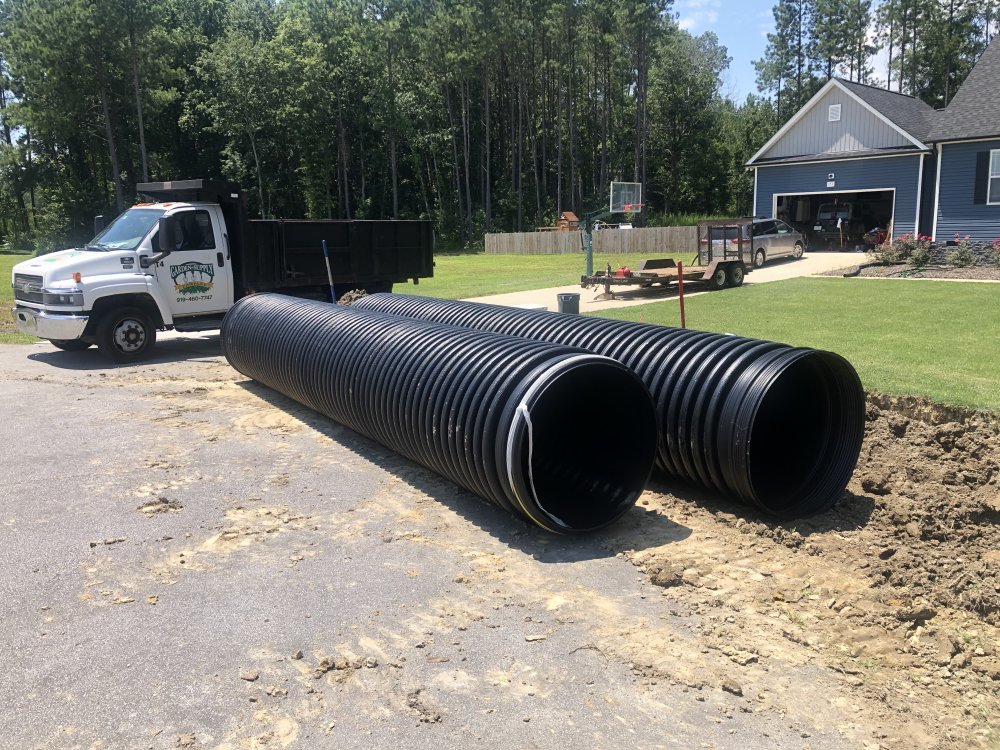 Ran a 36" pipe to extend the driveway tiles. Now the kids can't fall in and mowing will be a lot easier.