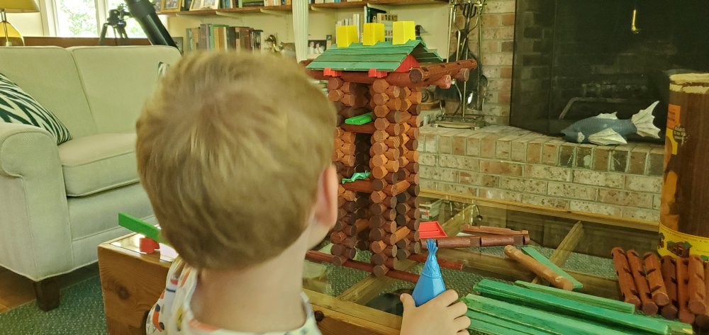 And my oldest got his first experience with Lincoln logs, and caught a pole-breakinv catfish!