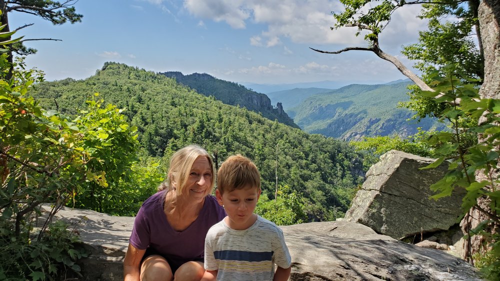 Sunday we headed up to Linville Gorge for a little walking around in the woods, or as white people call it..."hiking". My mom made a rare appearance.