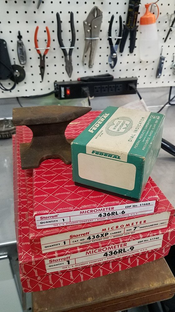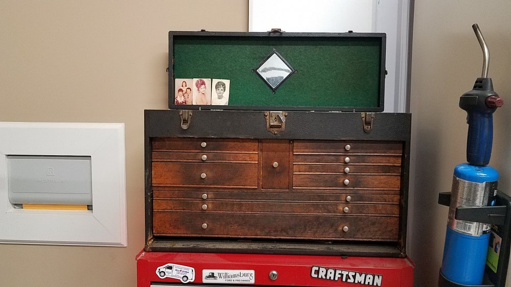Nice. looks like some micrometers and a dial indicator. The wooden tool chest looks like a Gerstner. Pull out the bottom drawer and look in to see if it is. It will have the logo stamped in it. Gerstner makes quality stuff.My Godfather was a machinist for RJR for 30 yrs. He is 84 yrs old. He's declining at a rapid rate. Dementia is eating him up. Stutters and shakes, and can barely walk. His wife called me over to give me his tools at his request. For all intent and purposes I am his son and he wanted to pass all of his tools down BEFORE he went any further down this path.