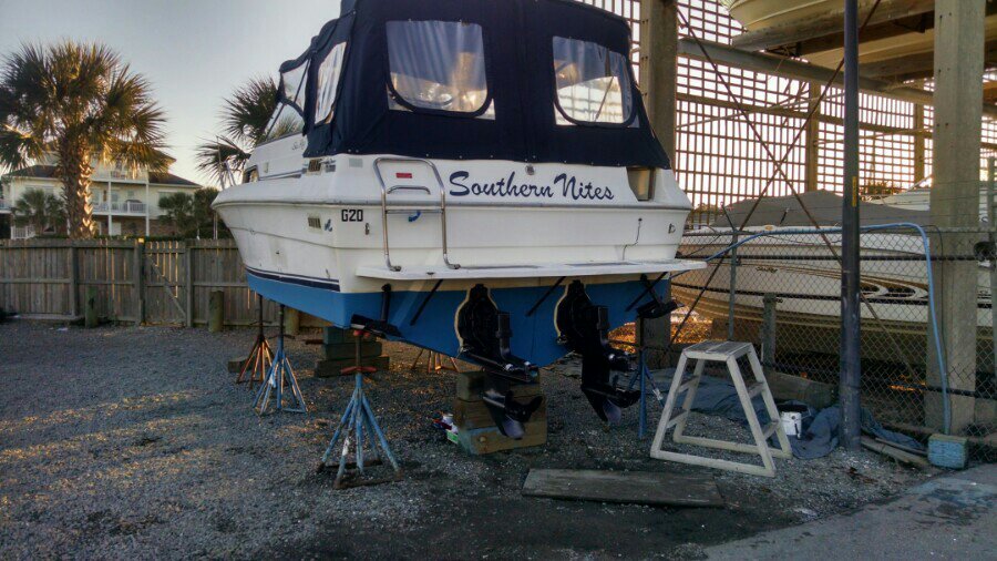 Weekend project... Painted out drives , replaced zincs, and repainted bottom. Interior repairs and cleaning next. Should be moving on to live aboard in the next week.