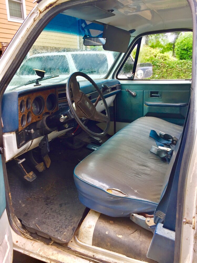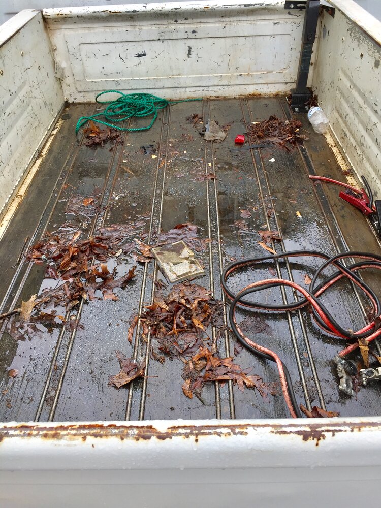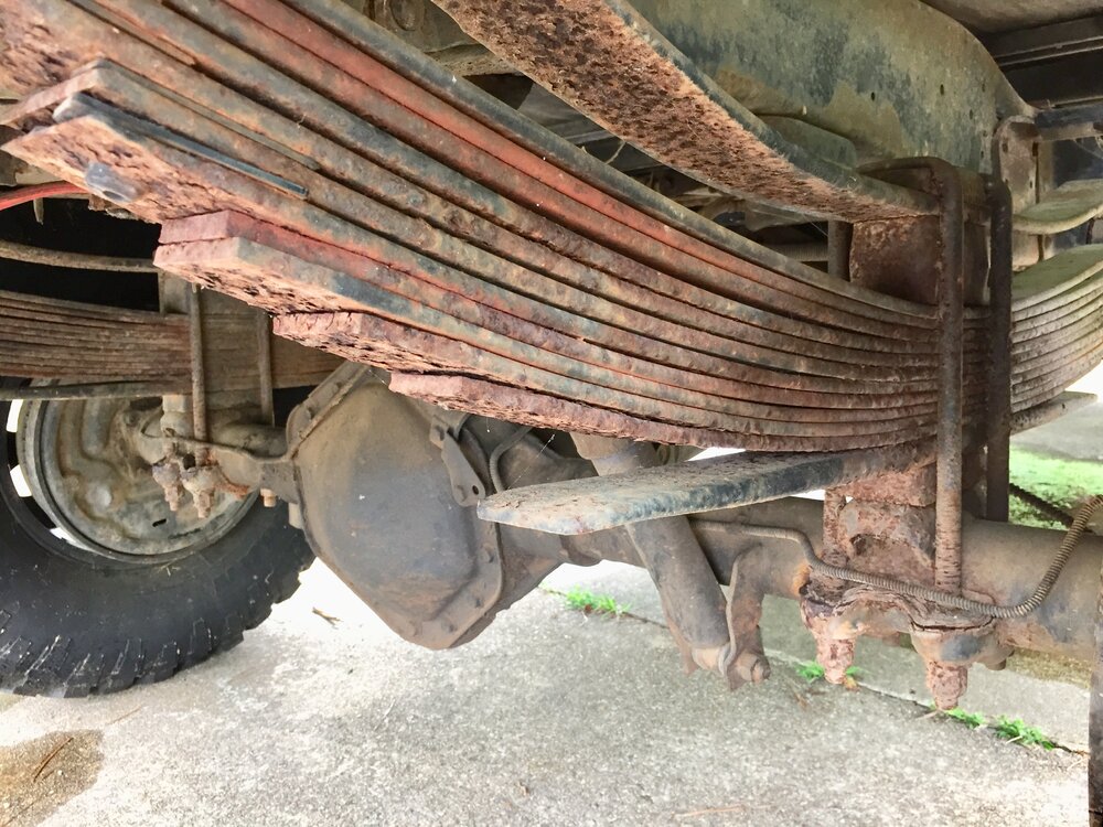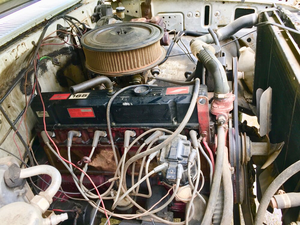 Snapped a few in between the rain this morning. You can see the front end rake when looking from the side. Going out on a limb and saying it’s from the combination of the overkill spring pack in the rear and the negative arch half ton springs up front. 292 with Mercruiser valve cover for more torques and horse pressure. Bed wood is in great shape...with some battery cables running through and down along the frame to somewhere up front. Gotta check that out. A couple random phone numbers on the roof I might call just to see what happens.....