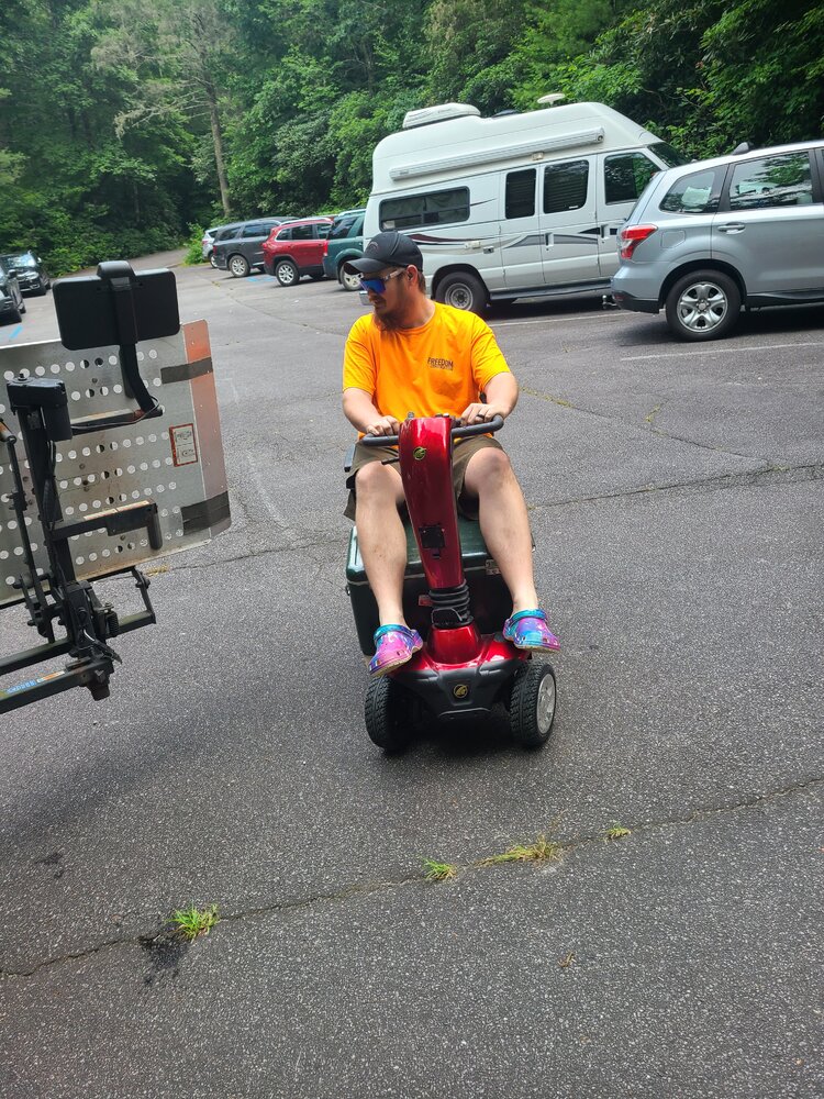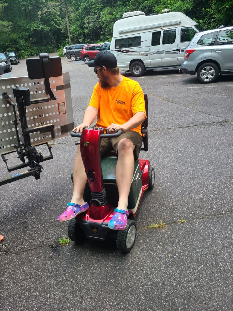 It’s an original Rokon, that’s been “engineered” on. That Coleman seat is slapped on there. It’s got every drive mechanism besides jet propulsion. It’s belt, chain, and shaft driven all at once. To power the front wheel, there’s a shaft that runs through the frame out to a sprocket. It’s actually not as heavy as I anticipated.Tote gote?