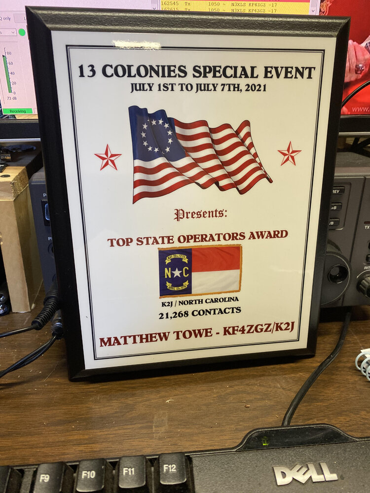 This year NC, operating as K2J with 30 or so individual ops won the total run and we got these plaques.