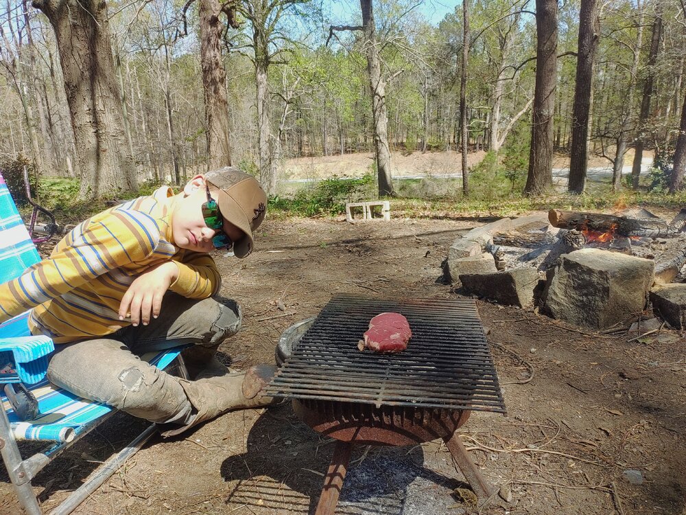 Since I can't go without a camping grill, I figured I'd build another one. Rolled .125" tread plate to a 15" diameter with a .25" thick vented bottom plate. .125" thick 1x1 stub legs in a tripod configuration. I can use practically any grate for cooking surface, but particularly a 16" round one, which I have a surplus of. Overall weight is a third of what the 14BD was. View attachment 371628