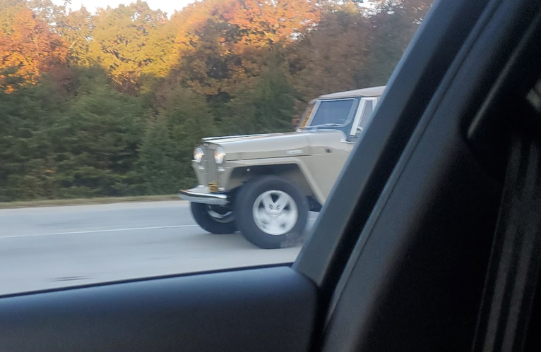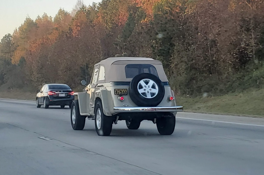 Beautiful bodywork but horrible wheels!Saw this sickeningly clean Jeepster on 485 this morning.