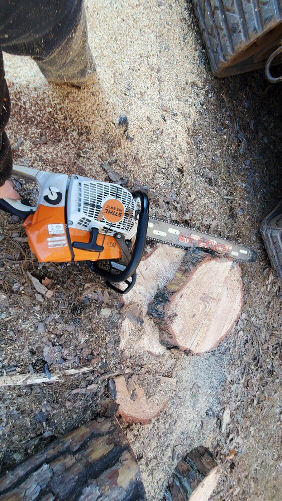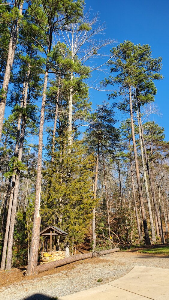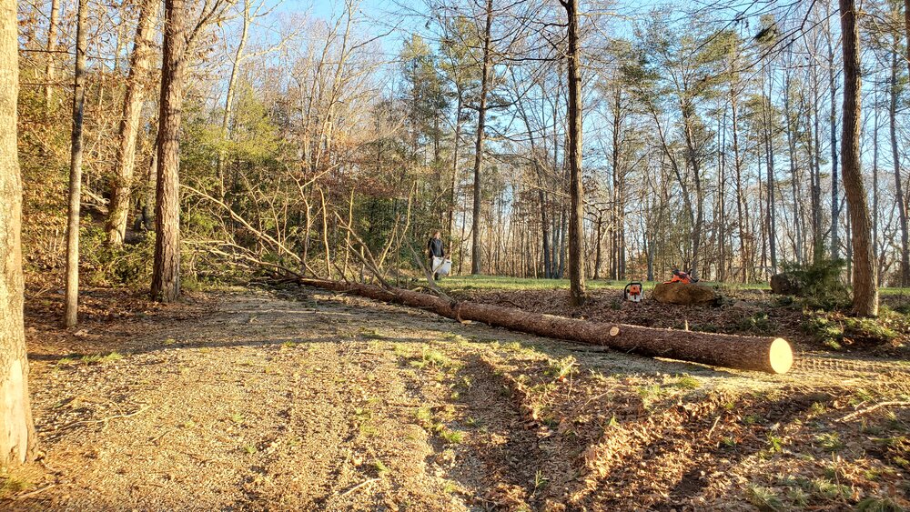 Ended up taking down and cutting up 11 trees total, 7 little 5-6 inch trees and 4 big pines in the 14-18" range. Started at 3pm, and stopped at 6:30. Not bad for 3.5hrs.